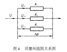 回路流量與各個泄漏流量的關(guān)系為QV =QV1 + QV2 + QV3 ,總的流阻與各泄漏回路支路流阻之間的關(guān)系為